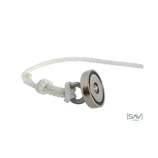 Fischmagnet aus Neodym-Magnetsystem Mit einer Zugkraft von 92 kg. Komplett mit 10 m langem Nylon Seil (Durchmesser: 8 mm) und Montage Auge.
