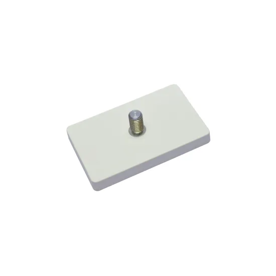 Magnetsystem aus NdFeB, Gummimantel weiß, mit Gewindezapfen, rechteckig 74 x 45 mm