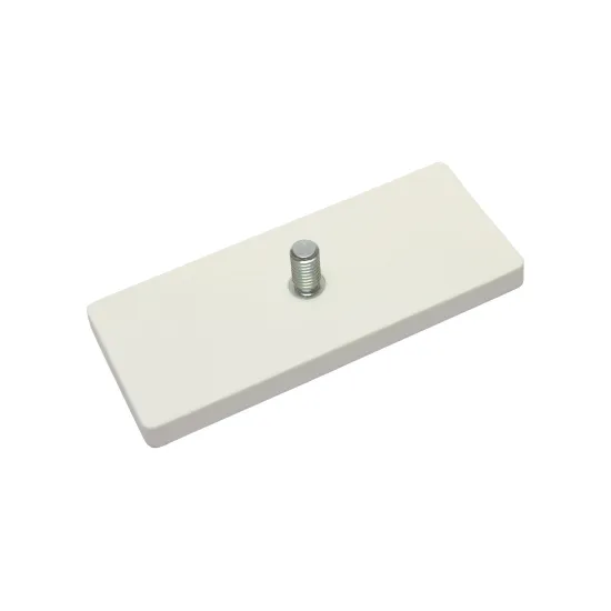 Magnetsystem aus NdFeB, Gummimantel weiß, mit Gewindezapfen, rechteckig 110 x 45 mm