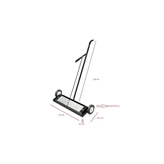 Permanentmagnetsystem mit Schnellreinigung zum Bereinigen des Bodens von Metallteilen wie Nägeln, spitzen Kleinteilen und anderen Abfällen aus der Werkstatt. Arbeitsbreite: 660 mm Breite: 160 mm Höhe: 1240 mm