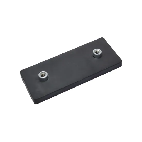 Magnetsystem aus NdFeB, Gummimantel schwarz, mit 2 Gewindebuchse, rechteckig 110 x 45 mm