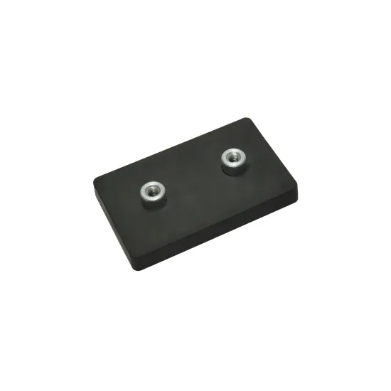 Neodymium magnet system in rubber, rectangular with 2 x threaded insert black 74 x 45 mm