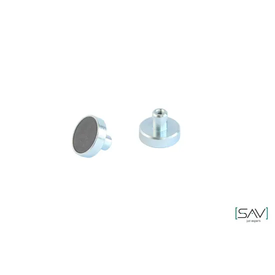 Type: SAV 240.02. Hard-ferrite pot magnet with galvanized shielding and threaded bush.