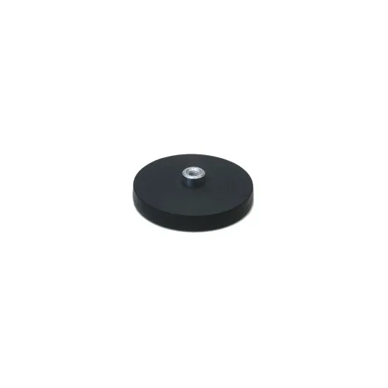 Neodymium magnet system with threaded insert, rubber coated, Ø 66 mm.