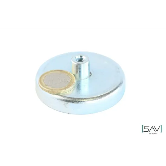 Ferriet potmagneet met draadbus Ø 80 x 18 mm M8