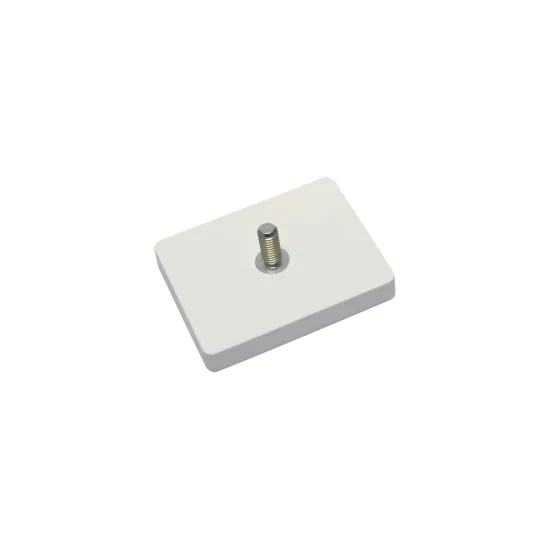 Neodymium magneetsysteem in rubber, rechthoekig met draadstift wit 59 x 45 mm