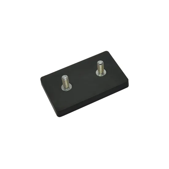 Neodymium magneetsysteem in rubber, rechthoekig met 2 draadstiften zwart 74 x 45 mm